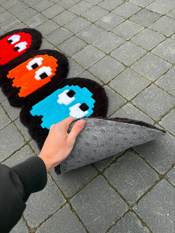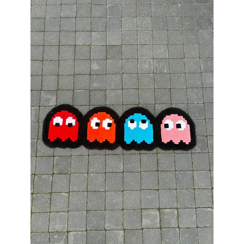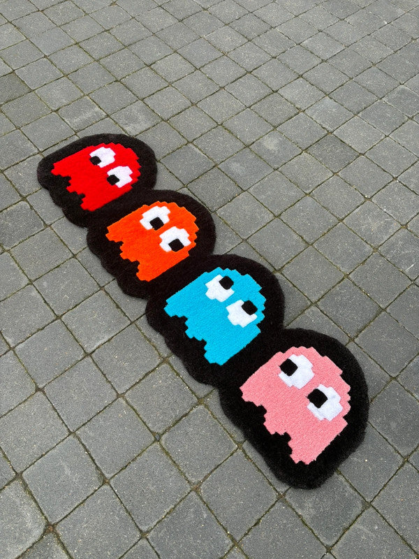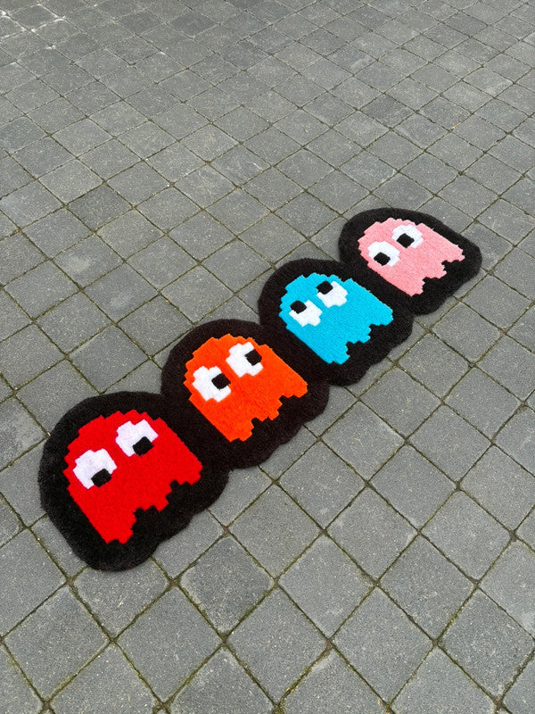 Tapis Pac-Man Pixel fantōme (100% fait main) 130x40cm Tufting/Rug