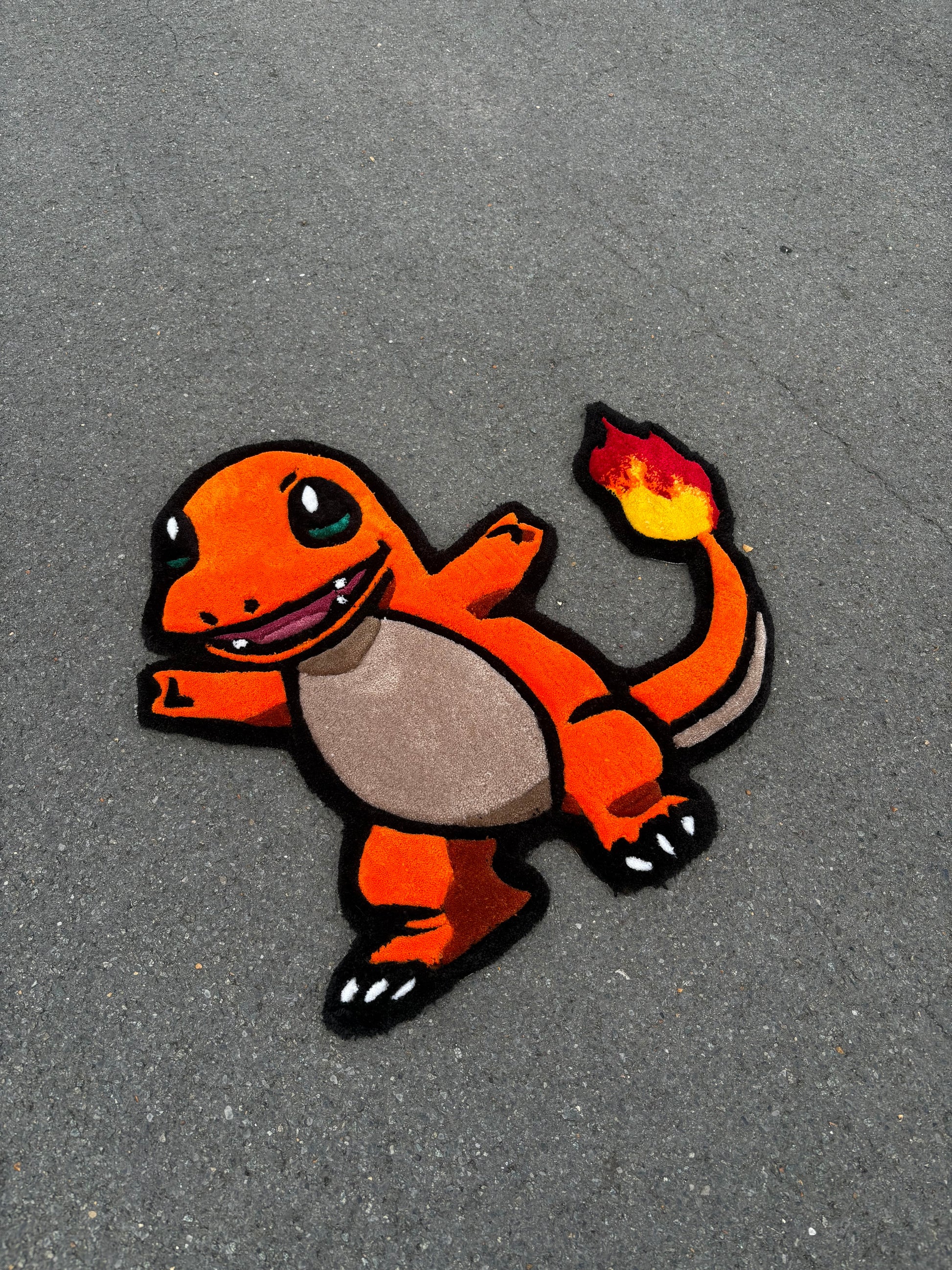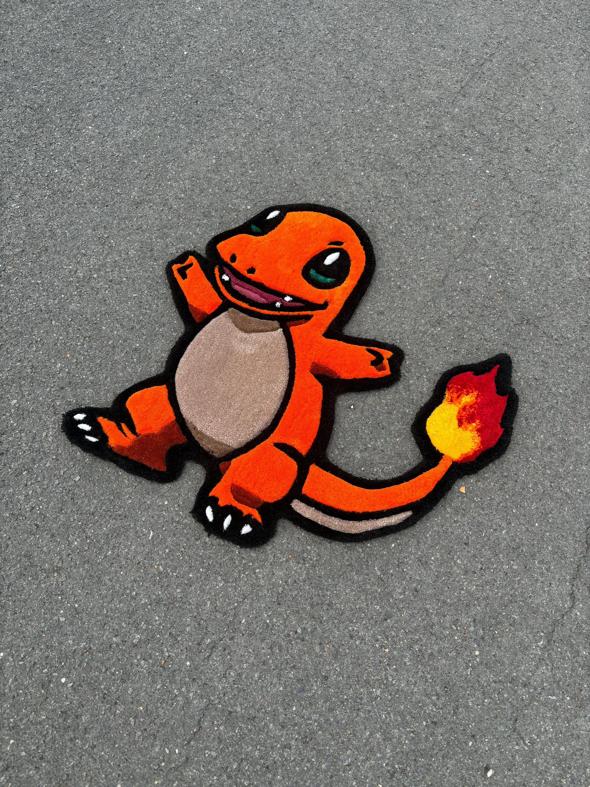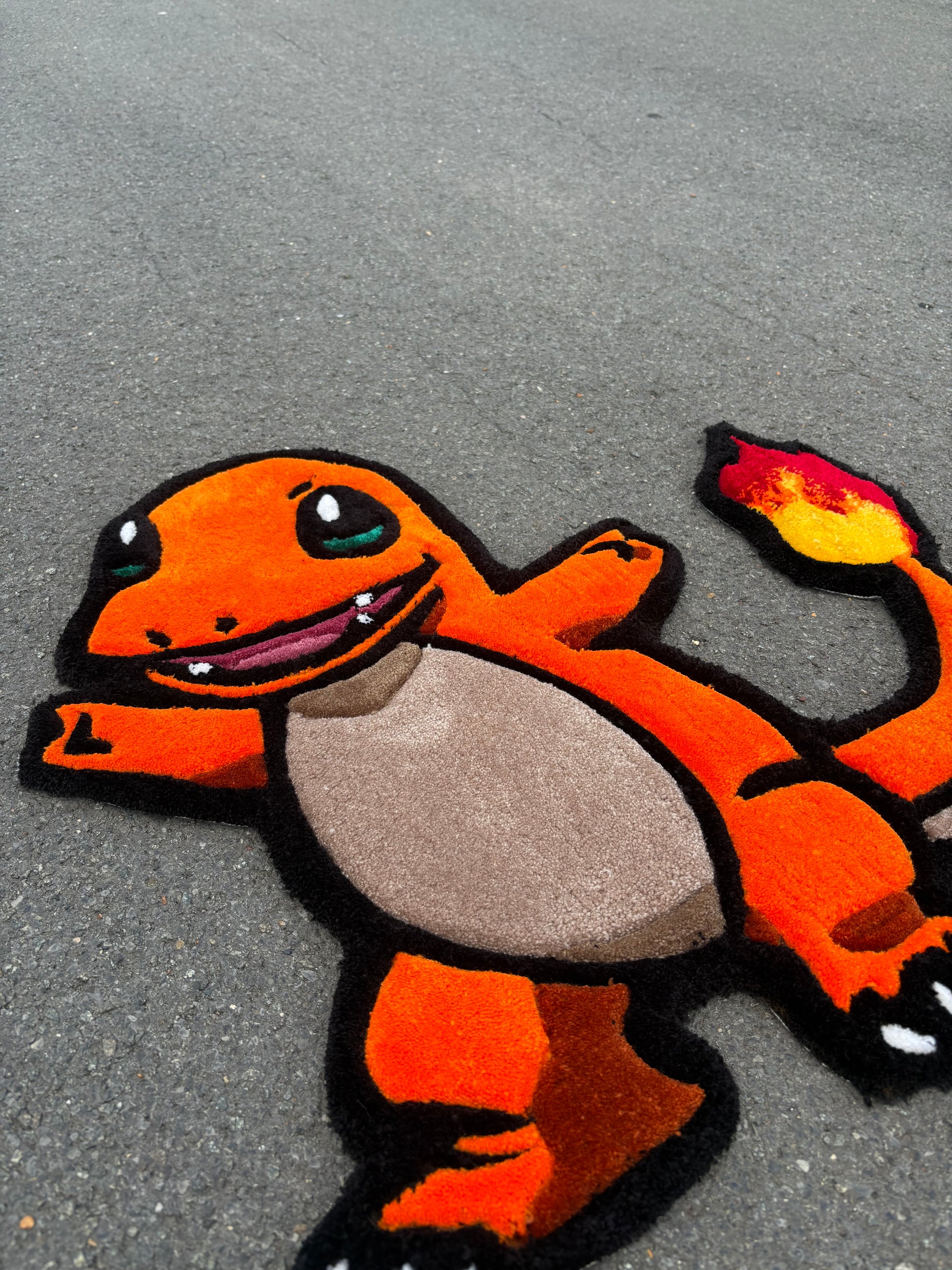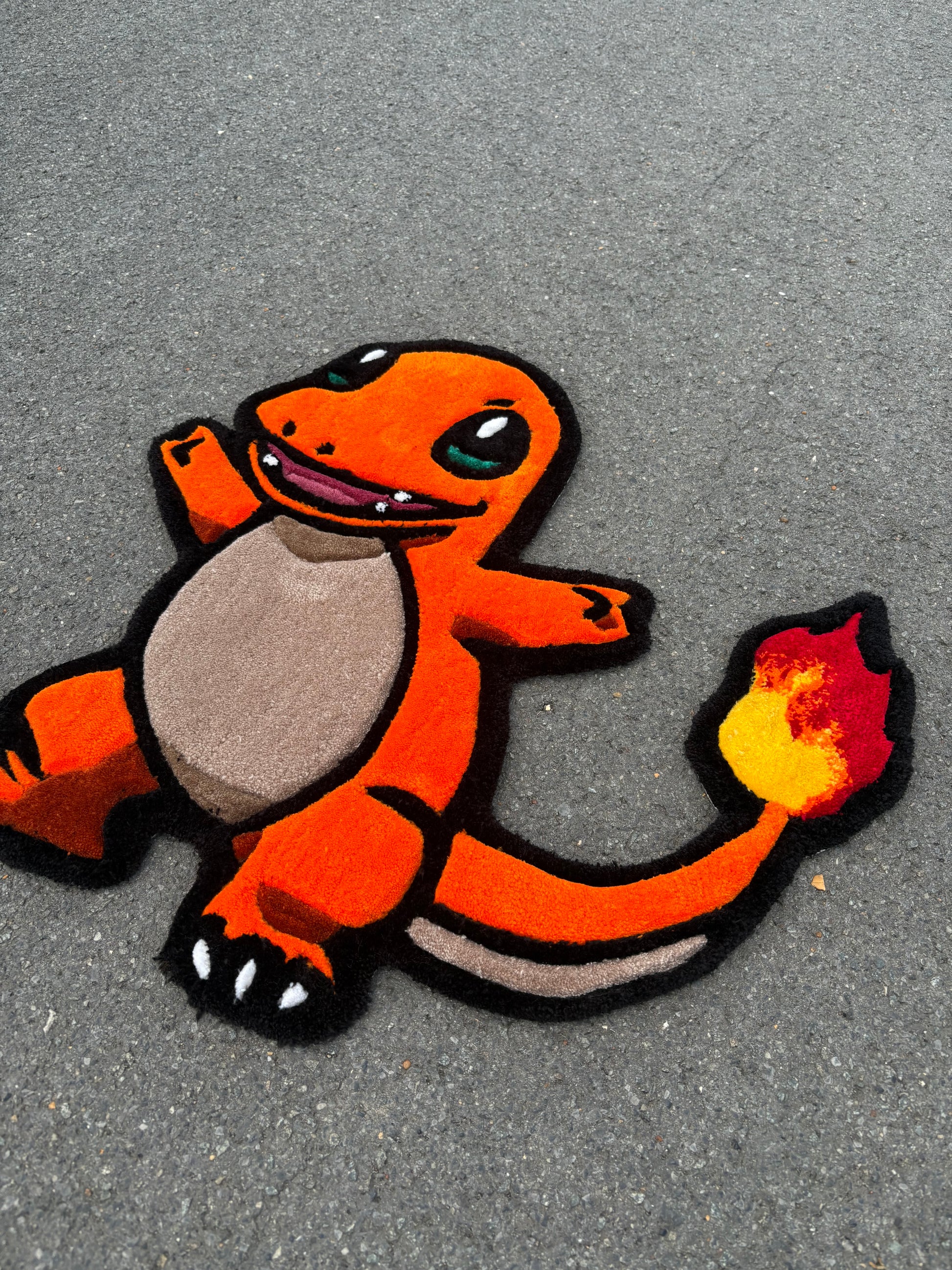 Tapis Salamèche/Pokémon (100% fait main)70x70cm Tufting/Rug