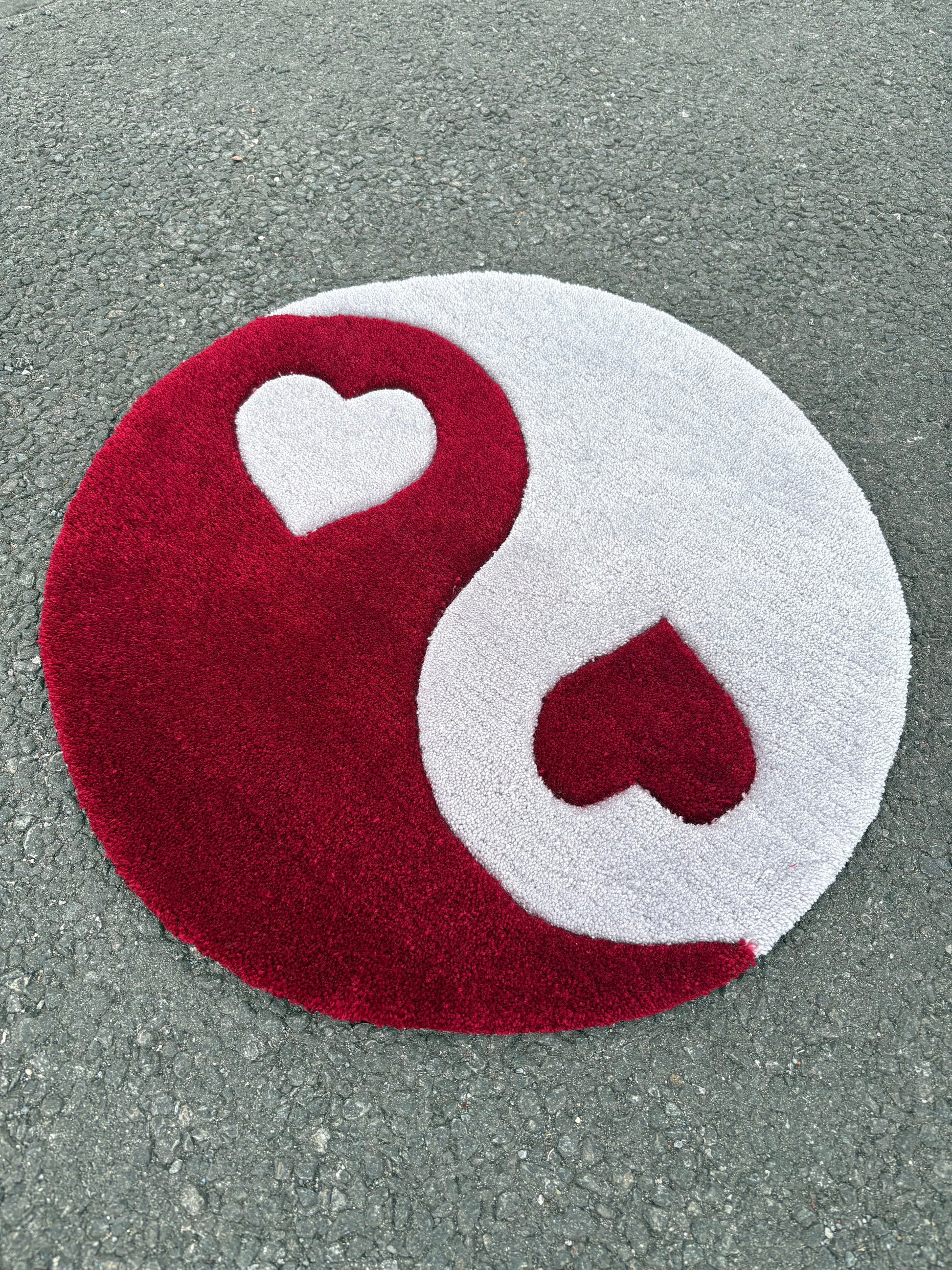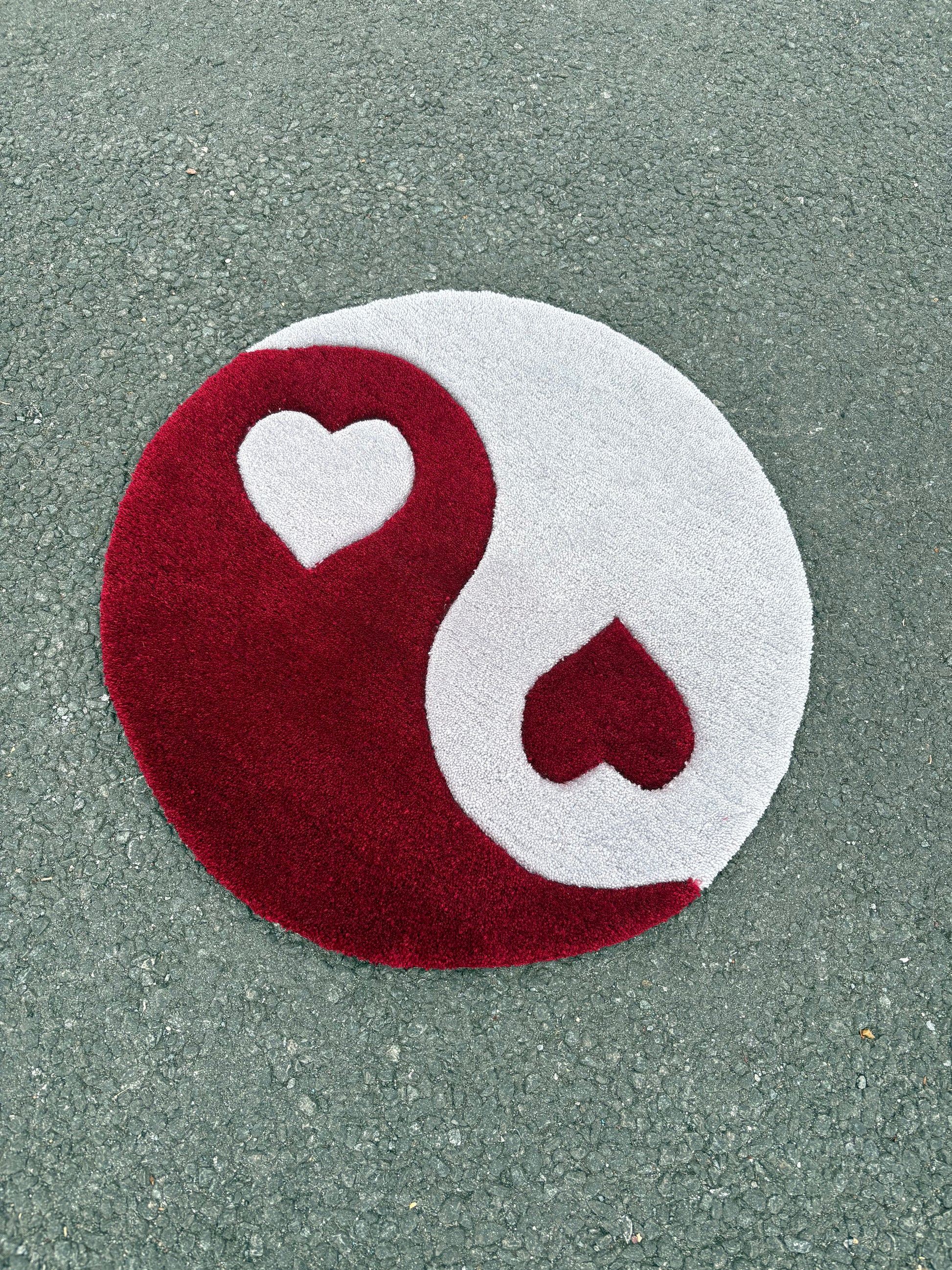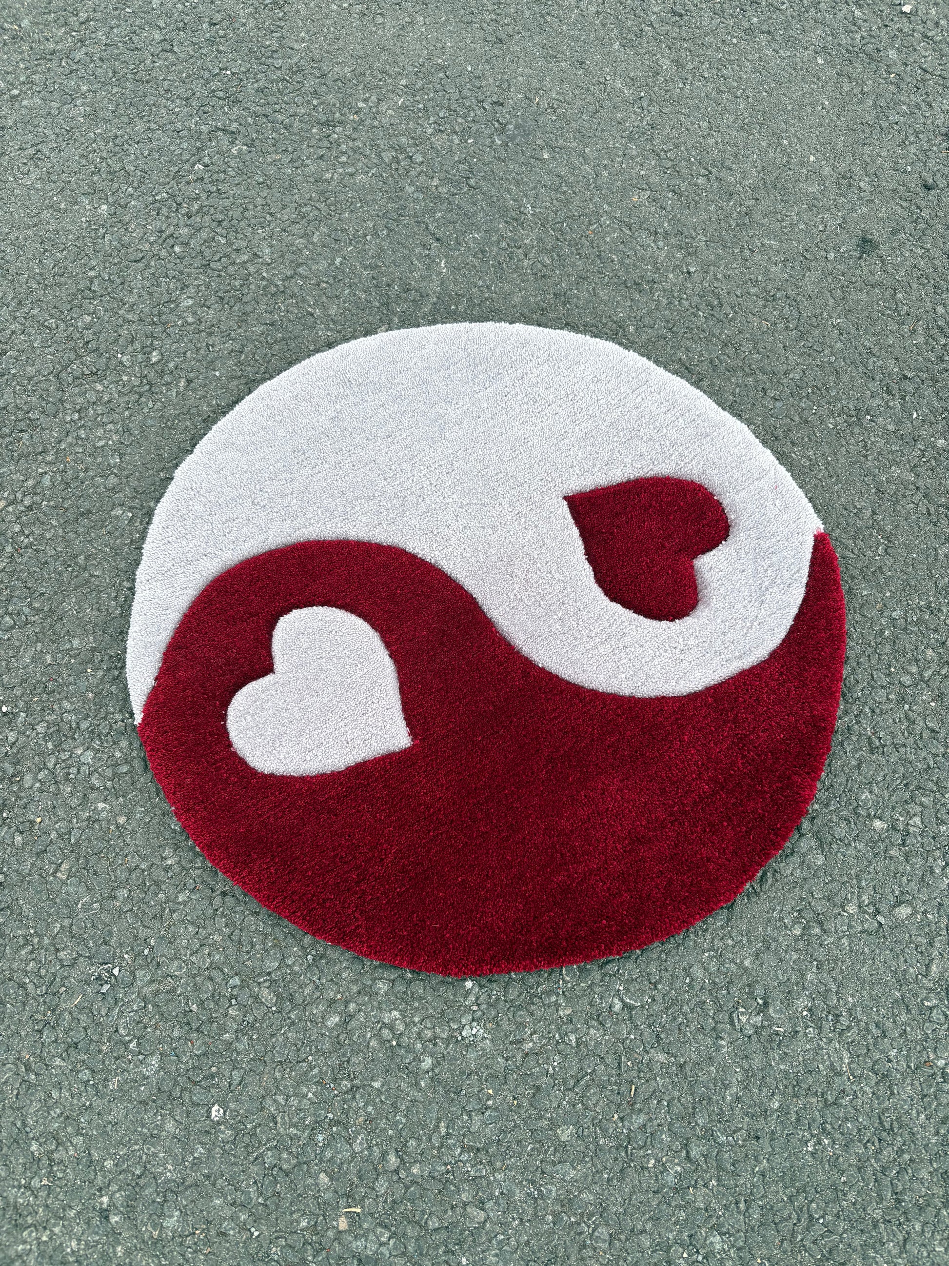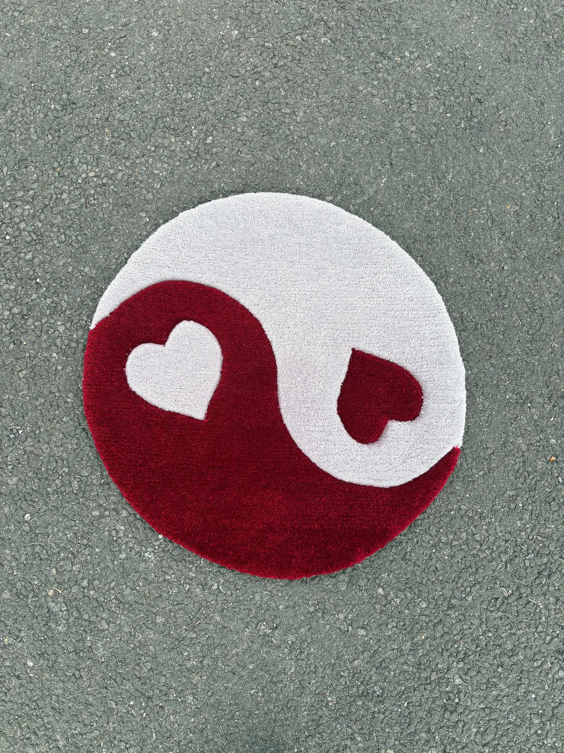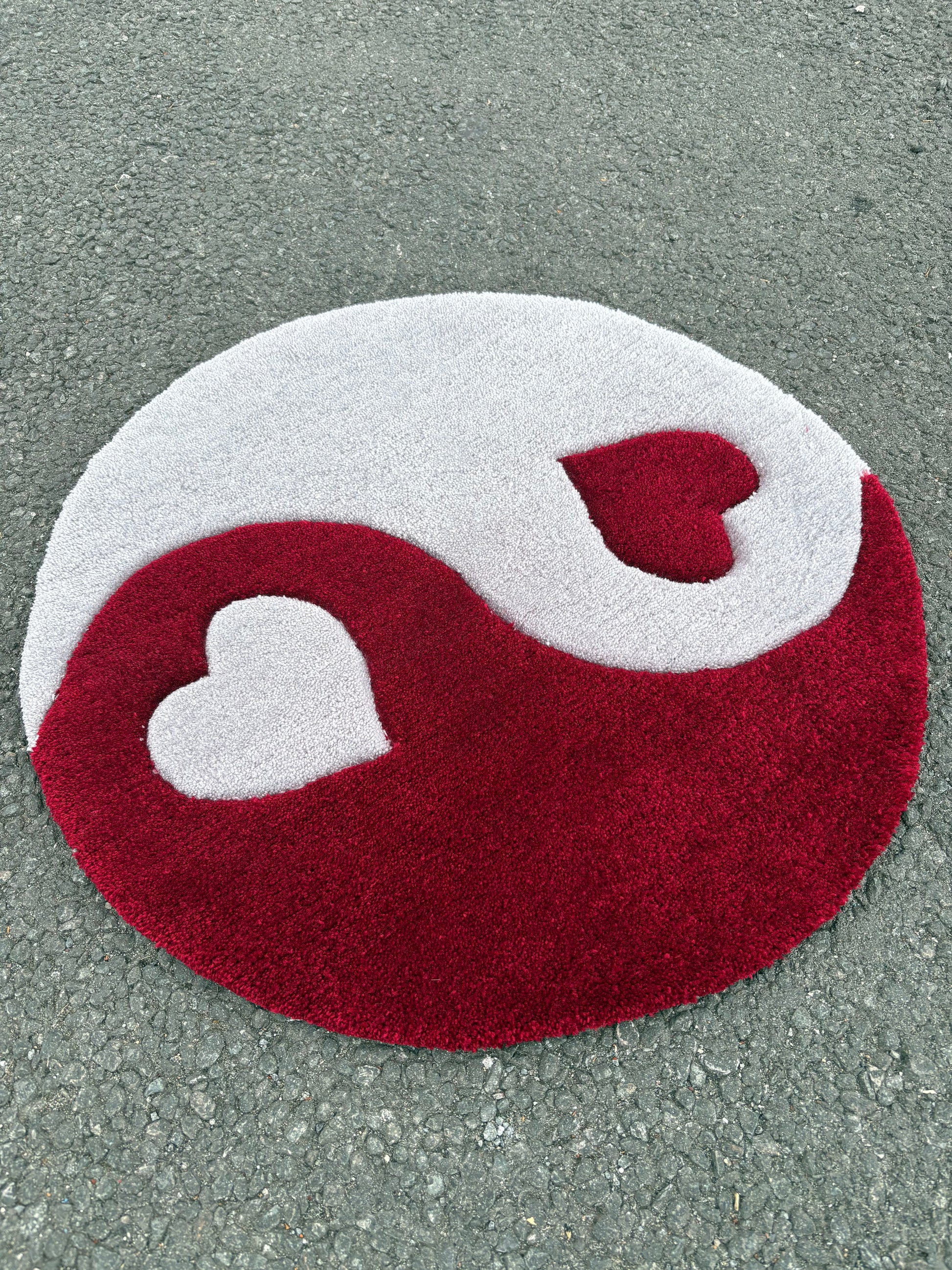 Tapis Yin Yang / Love ( 100% fait main) 65x65cm Tufting/Rug Bordeau/Gris